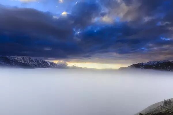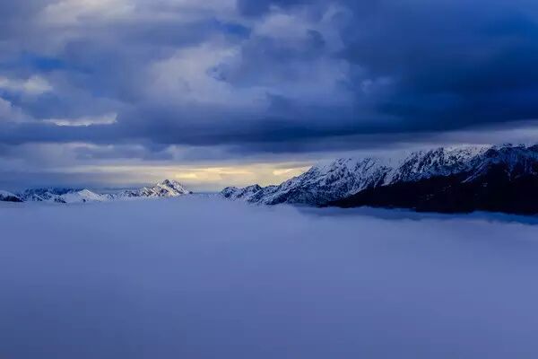 乌云,雪山,云海,仿佛梦境一样,呈现在眼前。
