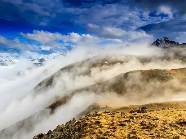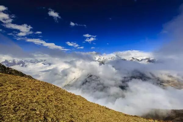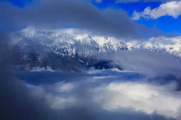遮天盖地的云彩,神秘庄严的雪山,辽阔瑰丽的云海,扑面而来。