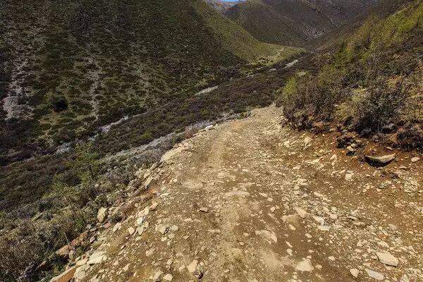 约三米宽的山路,是当地人为了挖虫草走摩托车修建的。汽车行驶起来,确实非常困难和危险。